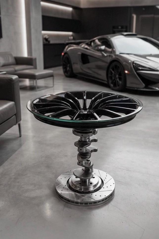 Discover this unique McLaren GT custom painted wheel table. A perfect blend of luxury and speed for car enthusiasts and collectors!
