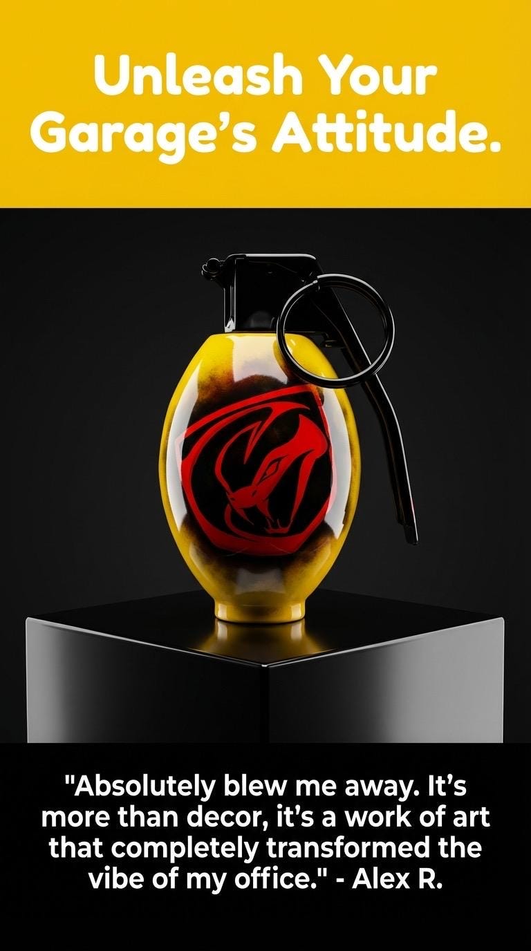 Transform your collection with our exclusive limited edition Dodge Viper airbrushed hand grenade. Expertly painted in Dodges factory paint : Race Yellow. This limited edition item is not just a conversation starter but a unique tribute to the world of American Muscle. Perfect for enthusiasts and collectors alike, it showcases meticulous craftsmanship and a bold design that captures the spirit of the legendary Dodge Viper.