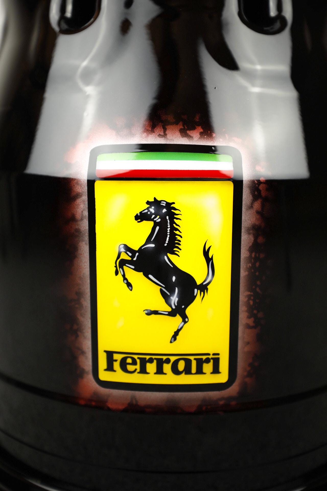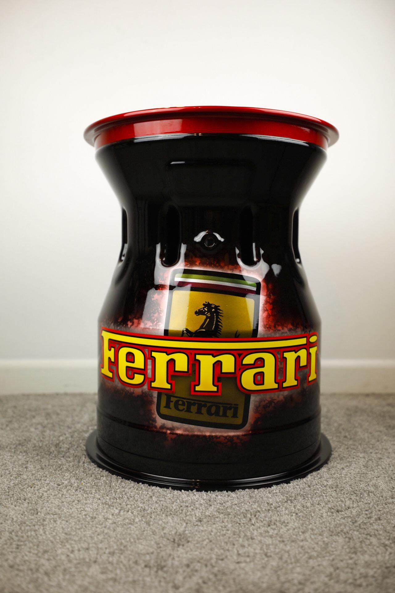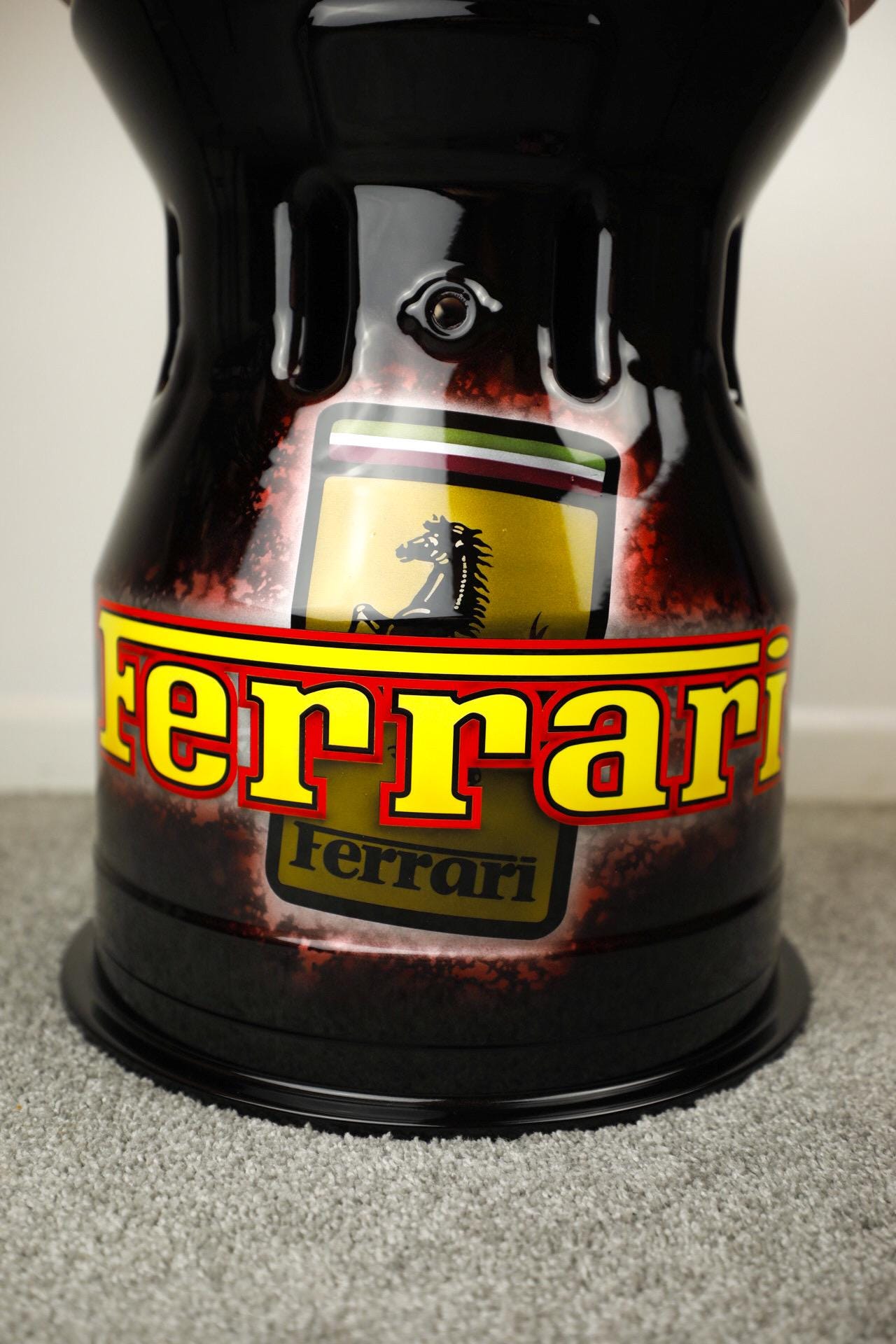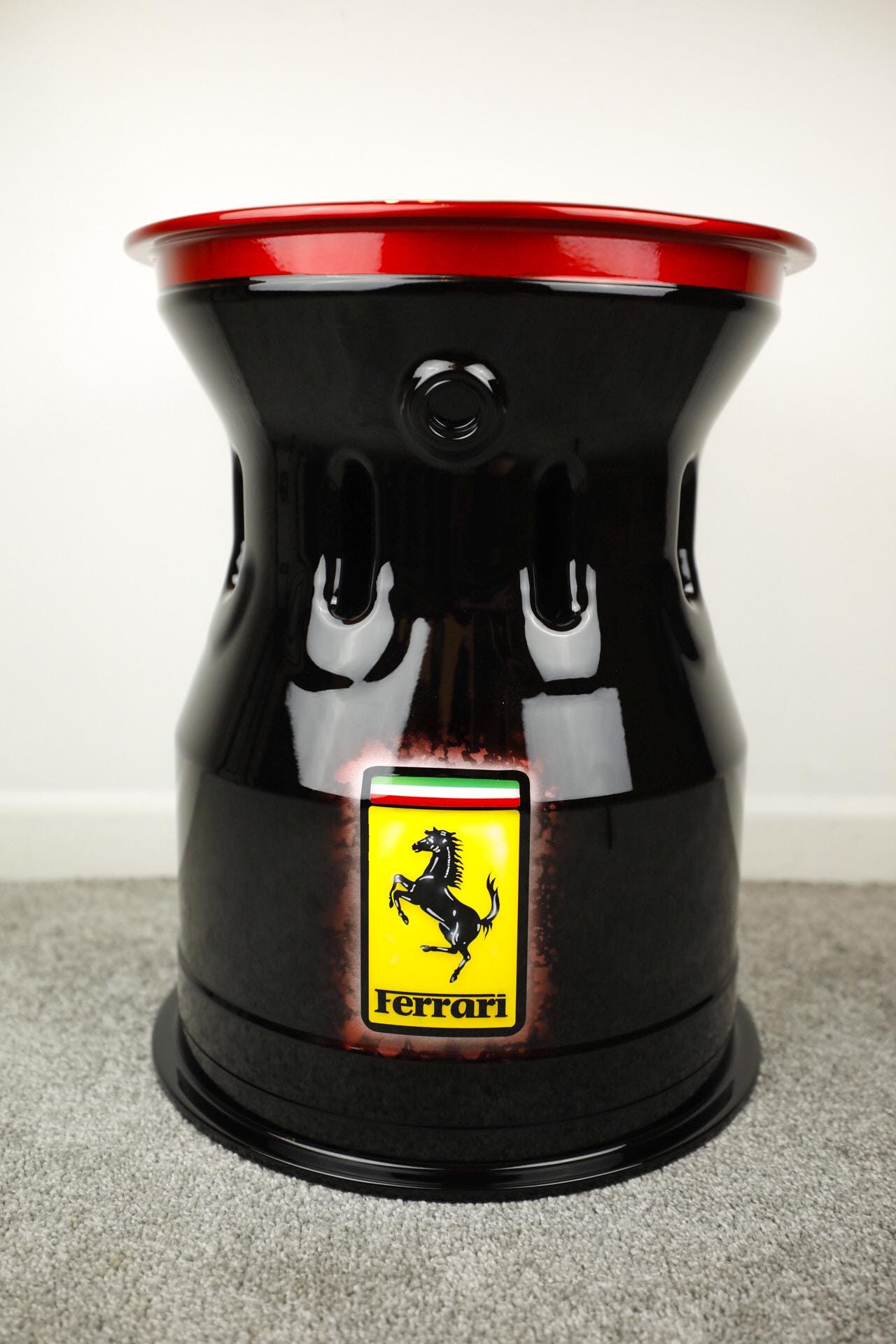 Experience the thrill of Formula 1 with this super rare Ferrari Formula 1 Wheel. This unique piece features a custom airbrushed design using an authentic race-used wheel that captures the essence of high-speed racing. A beveled sheet of glass lays on top with a Ferrari etched logo. A perfect match for motorsport enthusiasts, this table not only serves as a stunning conversation starter but also embodies the spirit of innovation and performance.