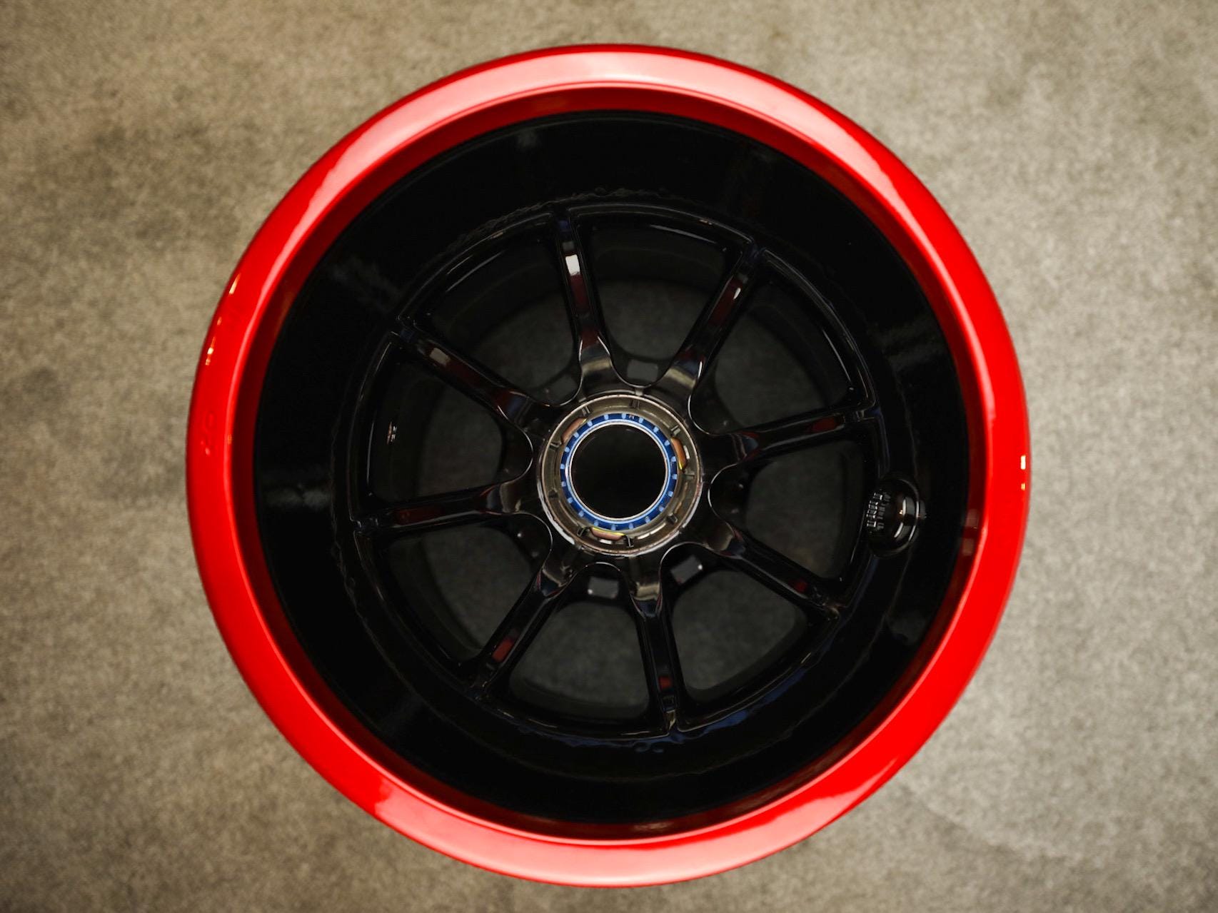 * This is a used Ferrari F1 rear wheel that has been restored with a custom Kandy Red Lip & a solid black inner/ outer barrel.