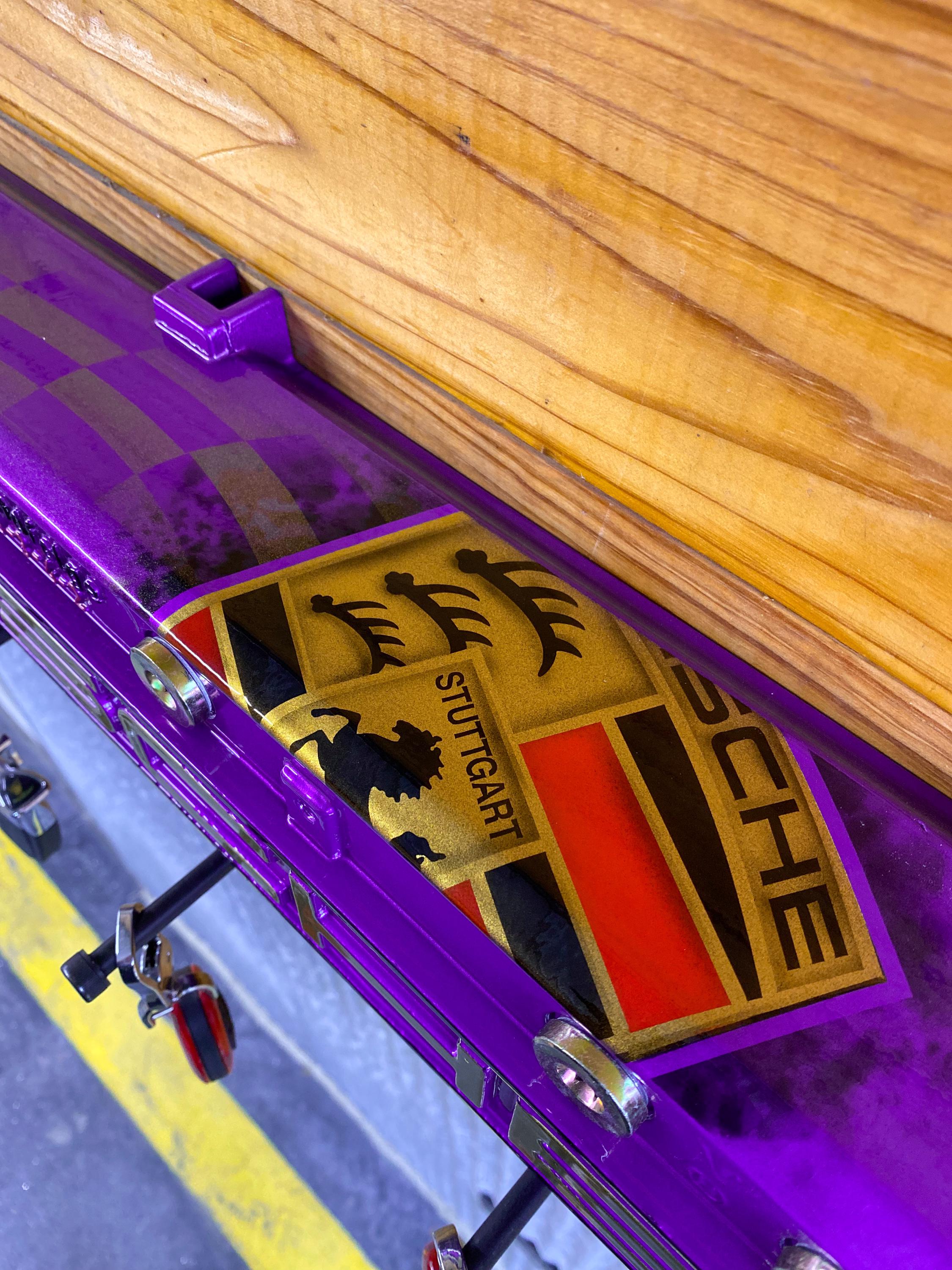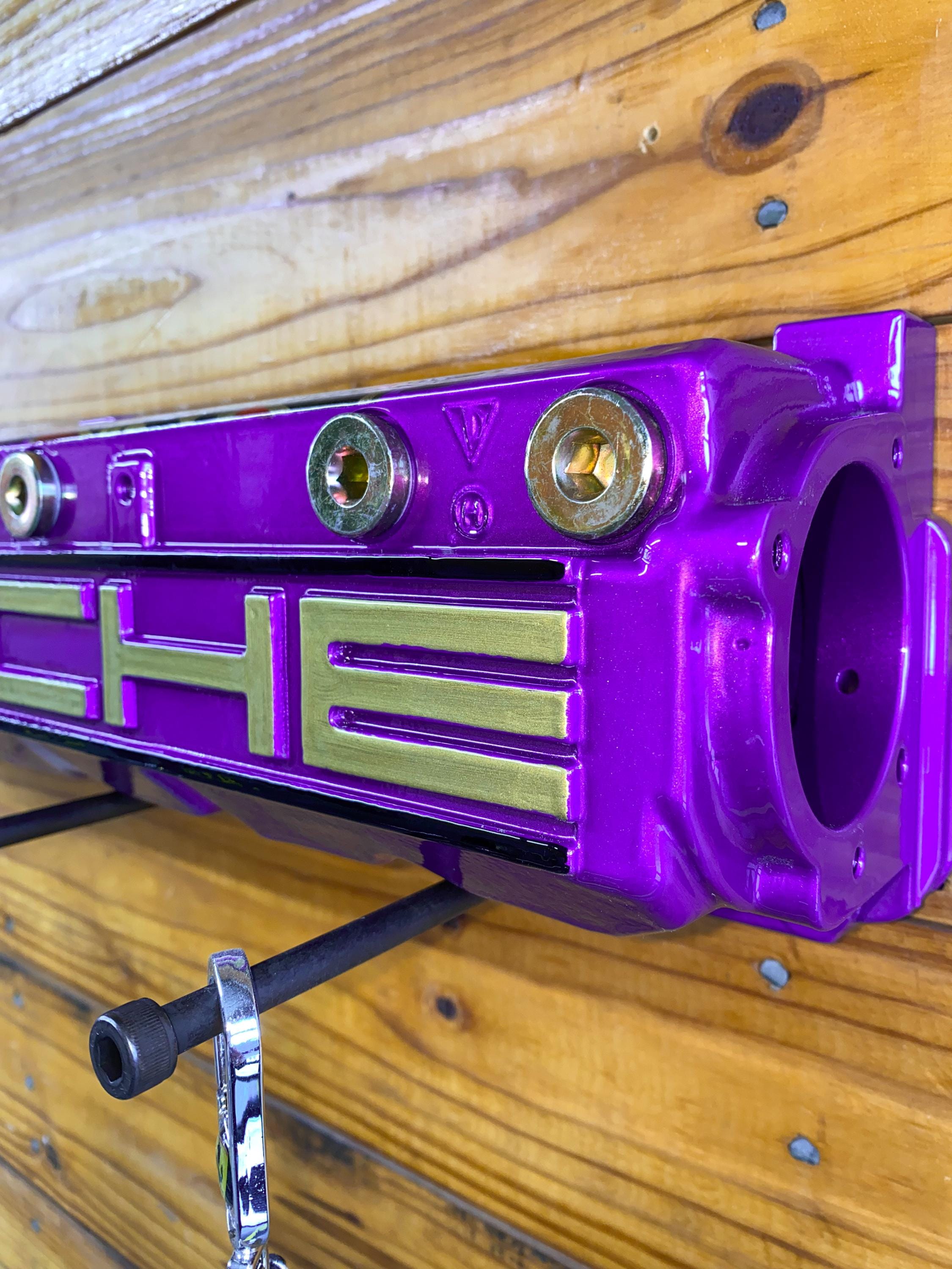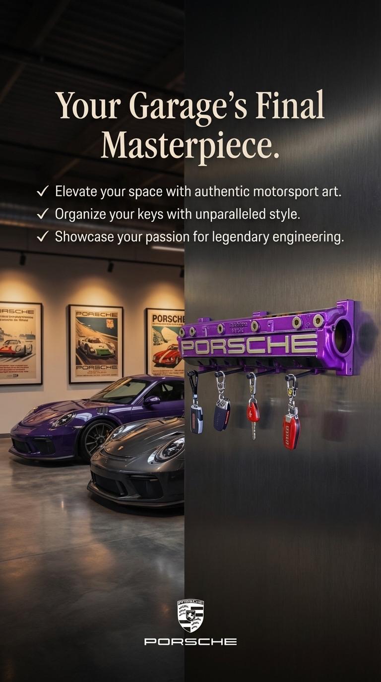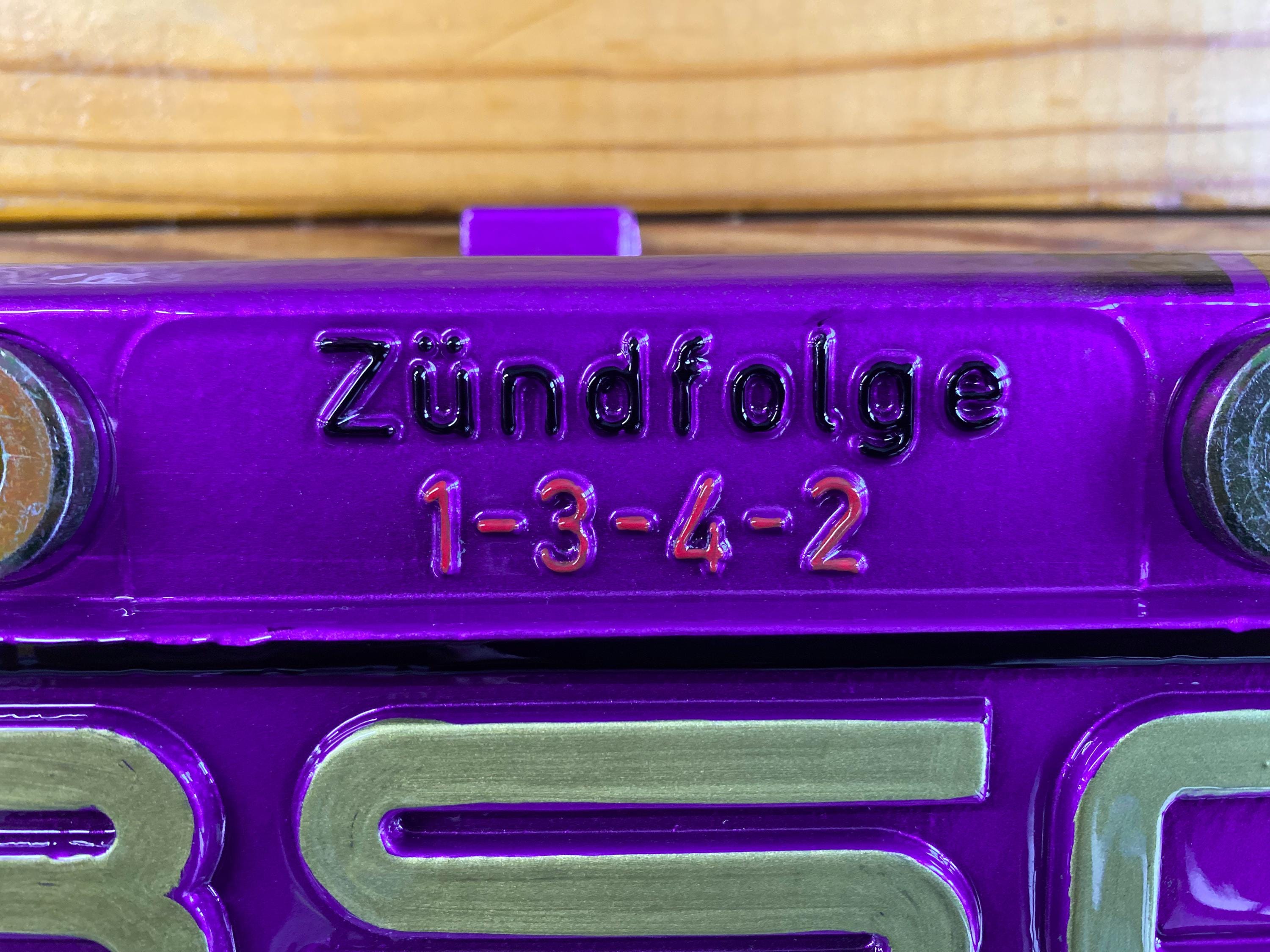 Upgrade your key organization with this Porsche 944 924S Cam Tower Housing Valve Cover Key Holder. A stunning piece painted in Viola Pearl. This unique accessory features custom airbrushed Porsche logos and hand-painted Porsche lettering, making it a true collector's item for automotive enthusiasts. With durable black steel bolt hangers, gold titanium nuts, and zinc-plated oil drain plugs, this key holder combines style and functionality, ensuring your keys are always within reach while showcasing your passion for Porsche