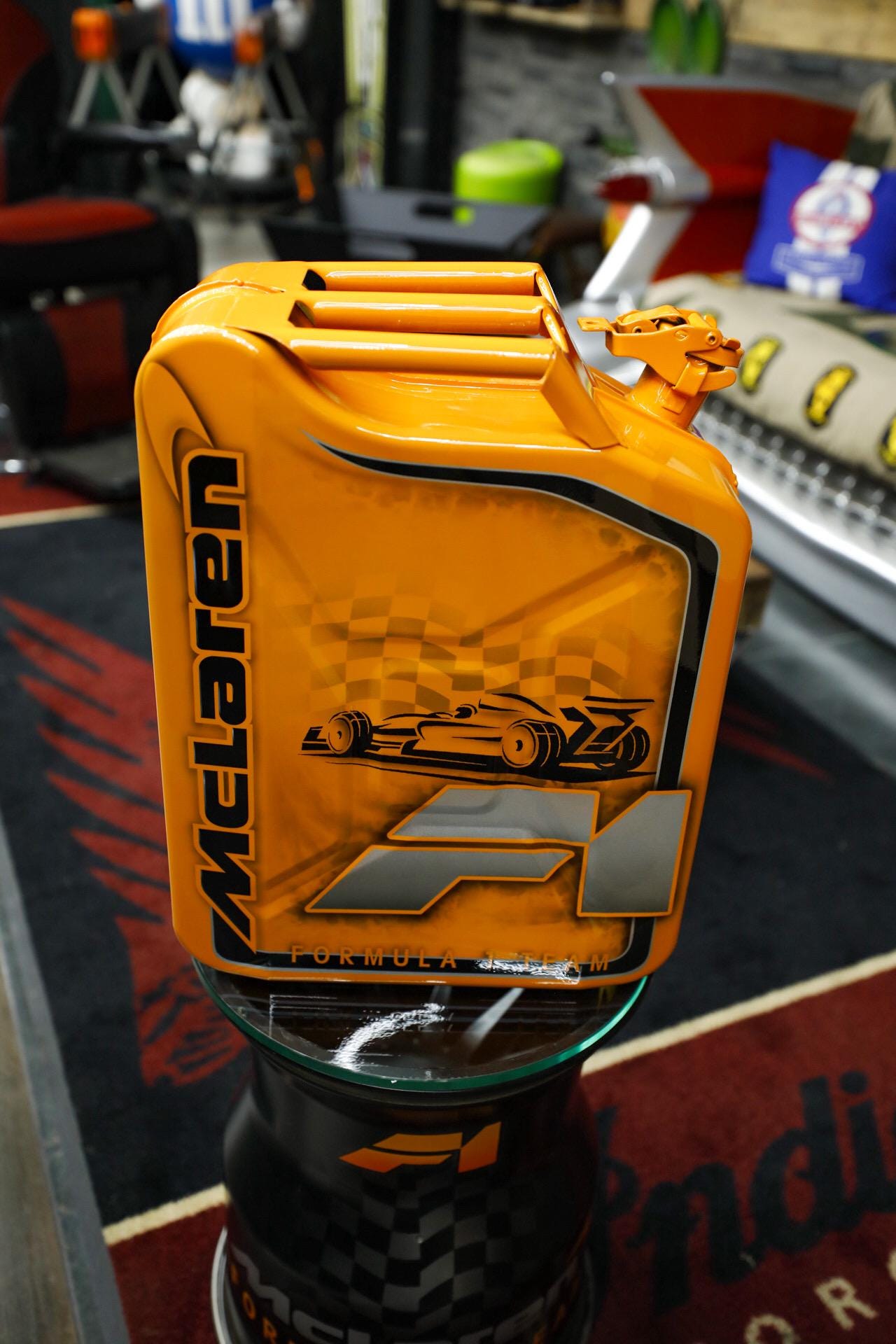 Rev up your collection with our exclusive Formula 1 McLaren custom-painted gas can! This stunning piece is not just functional, its a tribute to the exhilarating world of motorsport. Each gas can is meticulously crafted and painted to reflect the iconic designs of these legendary racing teams, making them perfect for display or as a unique gift for car enthusiasts. Elevate your garage or man cave with these eye-catching collectibles that celebrate speed, style, and the spirit of competition. Don’t miss your chance to own a piece of racing history, grab yours today and fuel your passion for speed!⛽️🏁