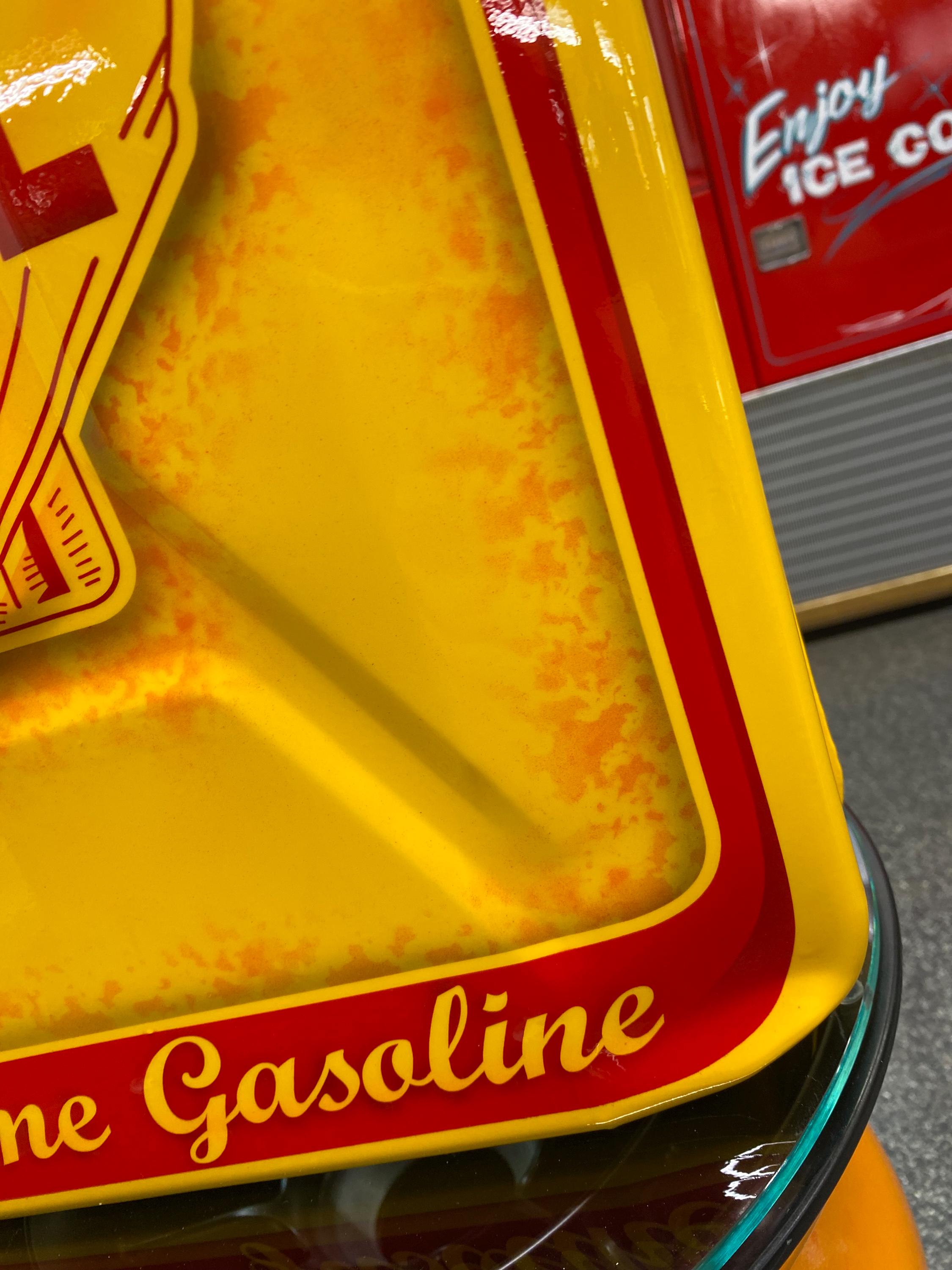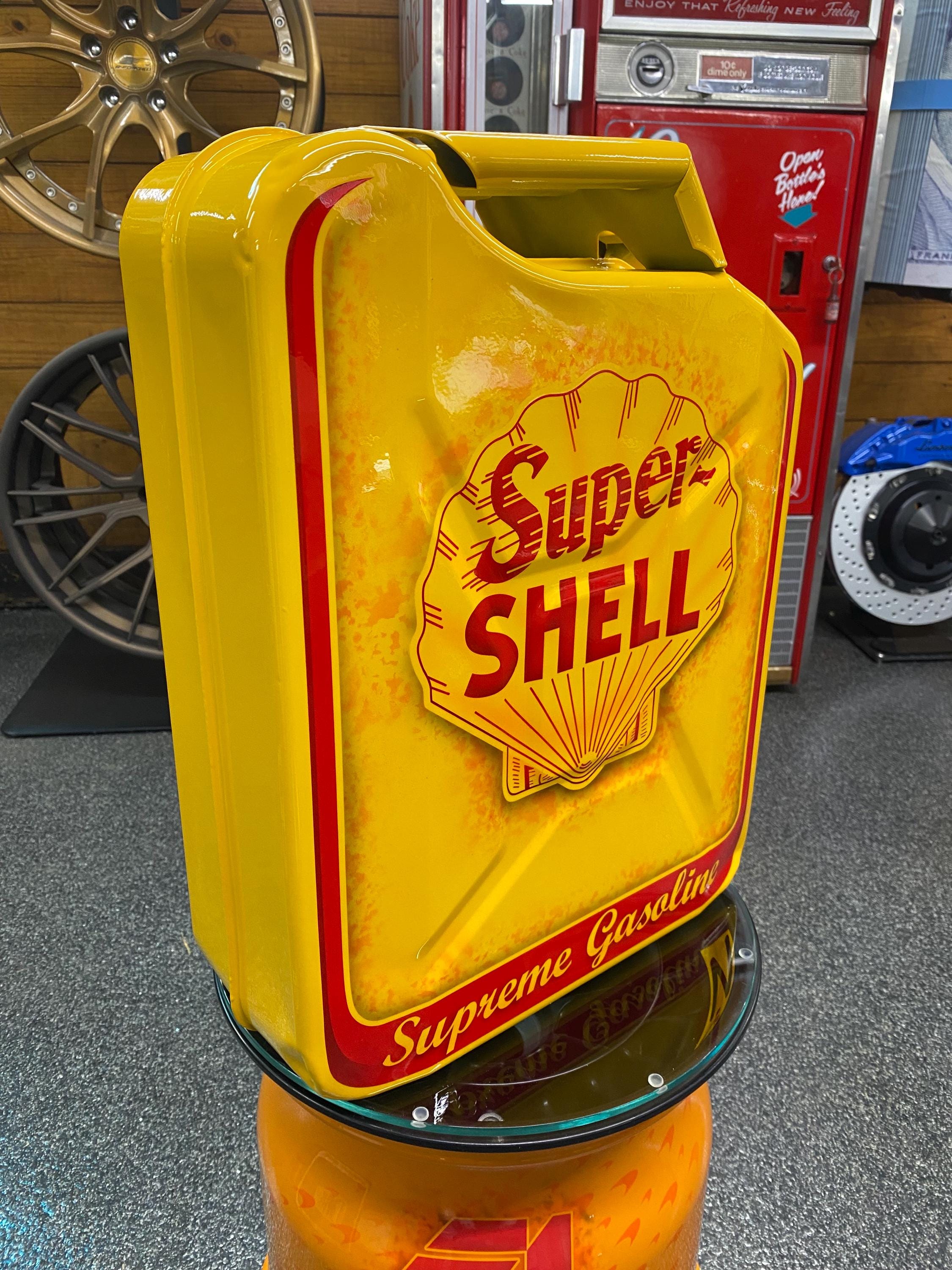This gas can is meticulously crafted and painted to reflect the iconic design of vintage Shell, making it perfect for display or as a unique gift for enthusiasts. Elevate your garage or man cave with this eye-catching collectible that celebrates vinatage style. Don’t miss your chance to own a 1 of a kind piece of art!