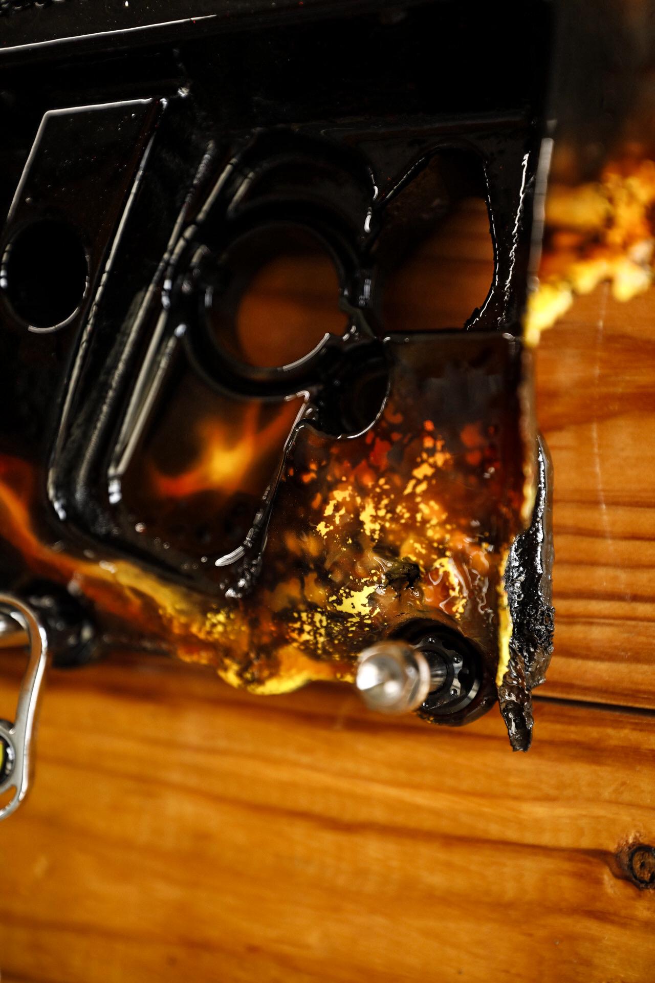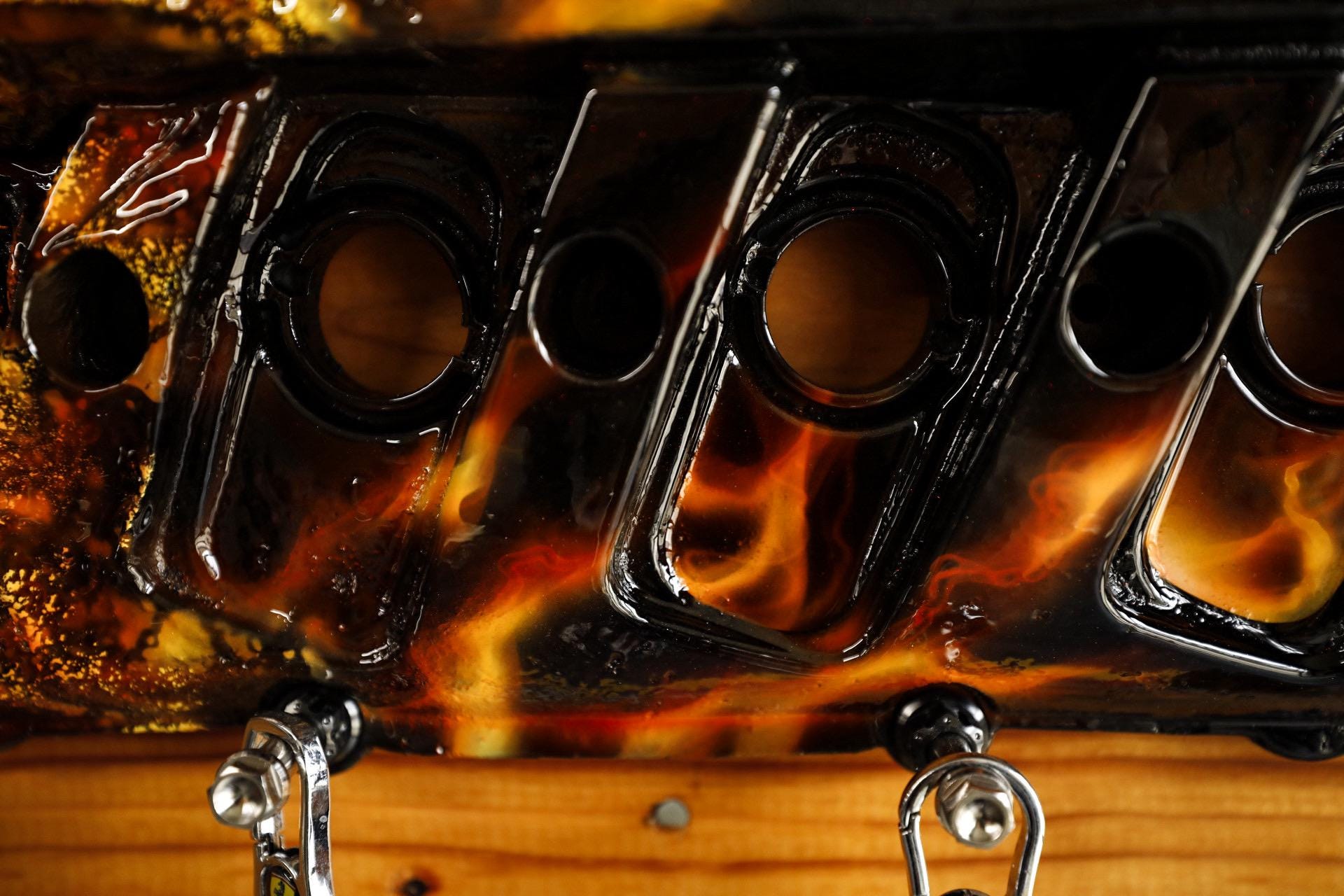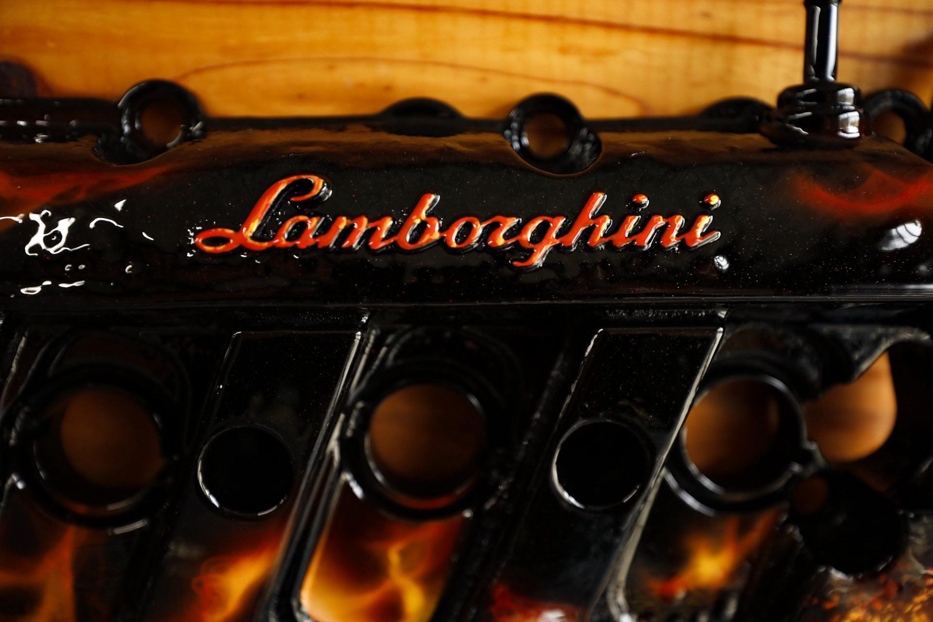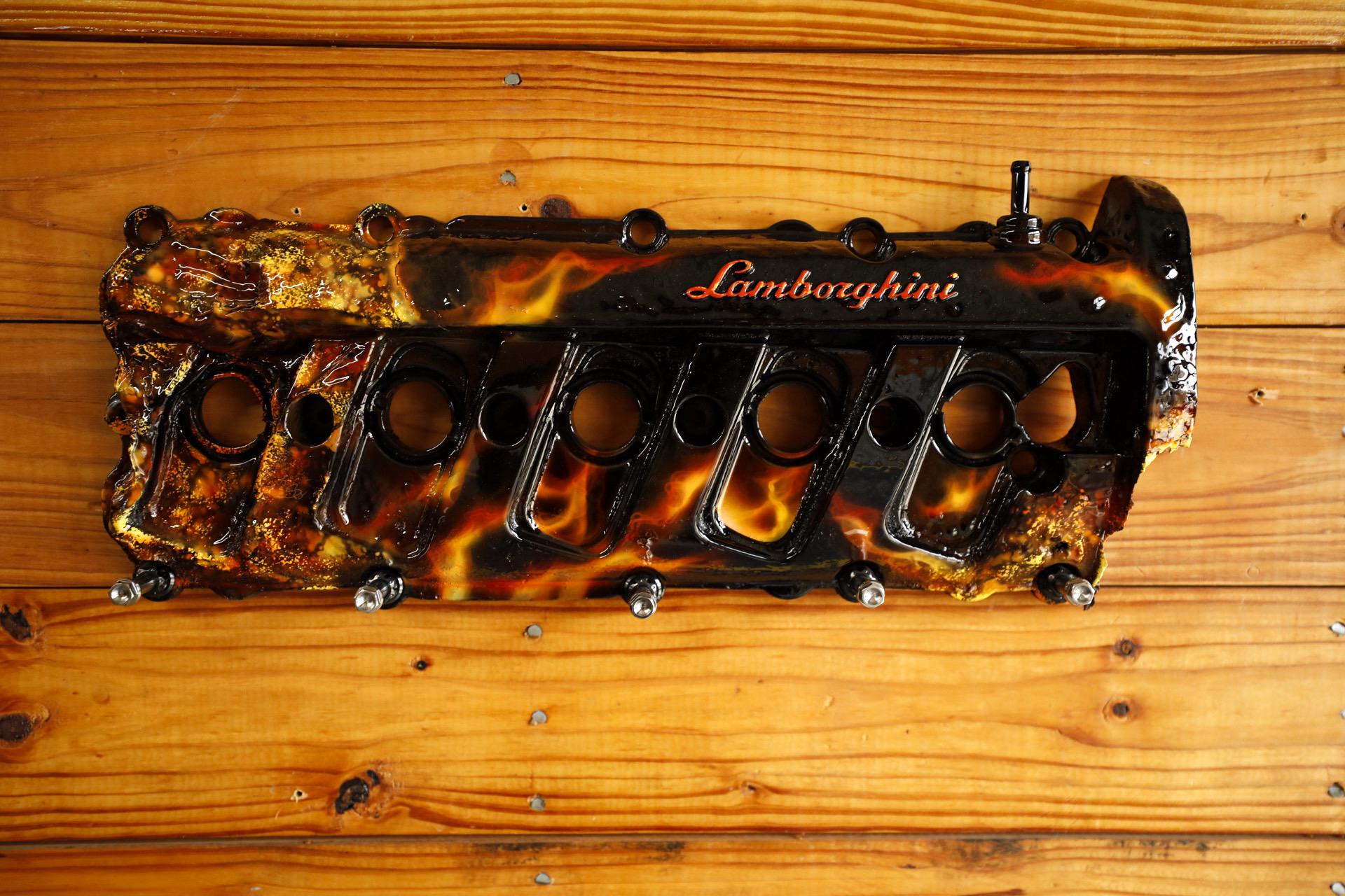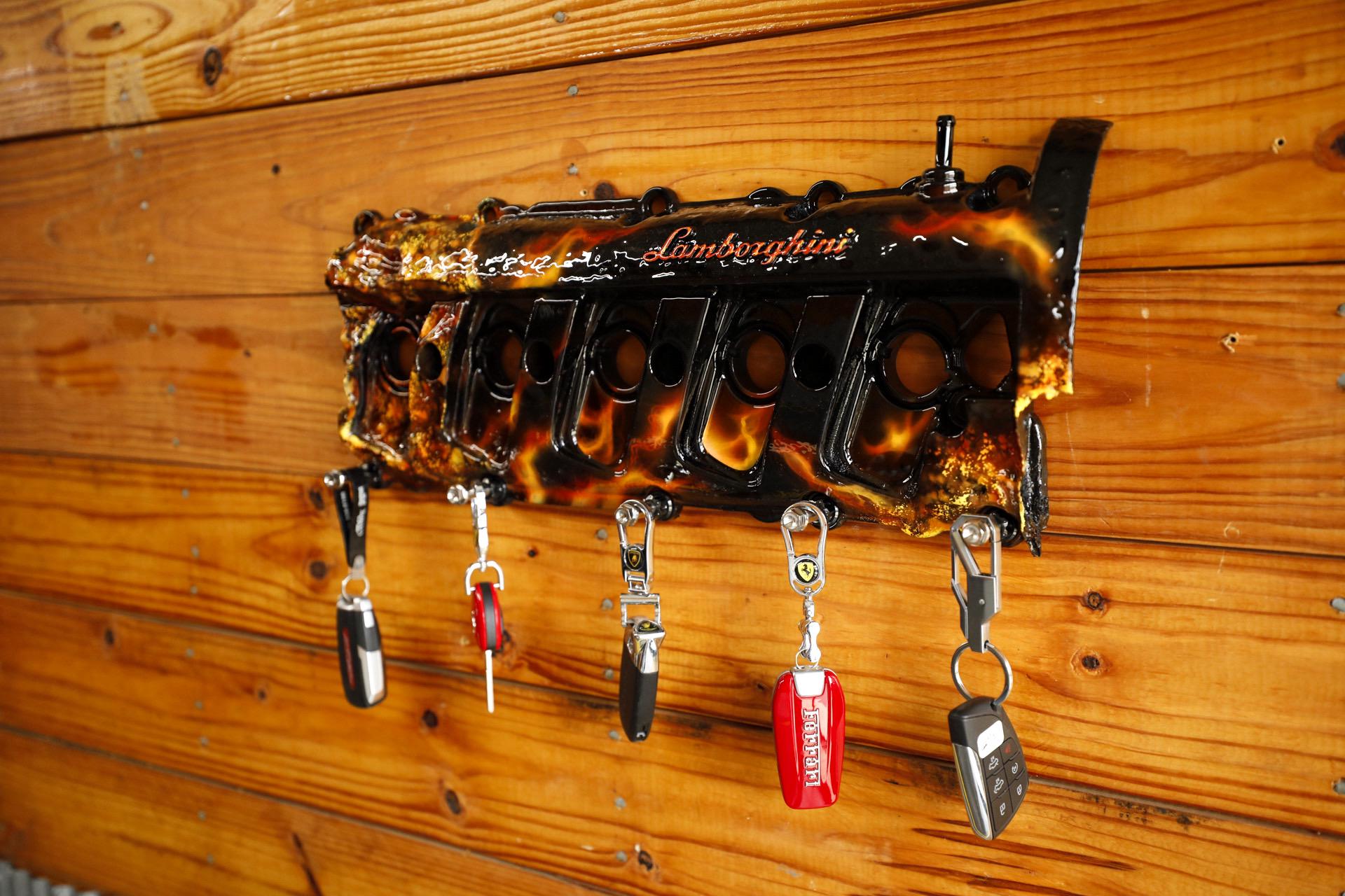 Upgrade your key organization with this custom Lamborghini Gallardo Burnt Valve Cover Key Holder. This unique accessory features a custom airbrushed flamed design, making it a true collector's item for automotive enthusiasts. With durable titanium bolt hangers, this key holder combines style and functionality, ensuring your keys are always within reach while showcasing your passion for Lamborghini.